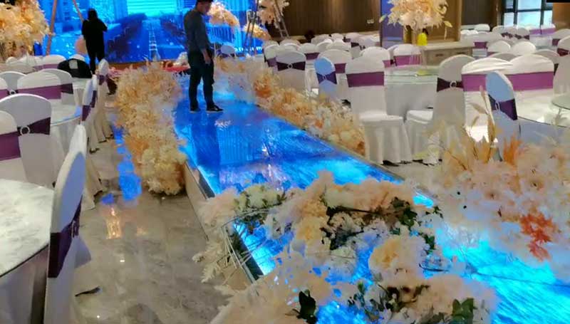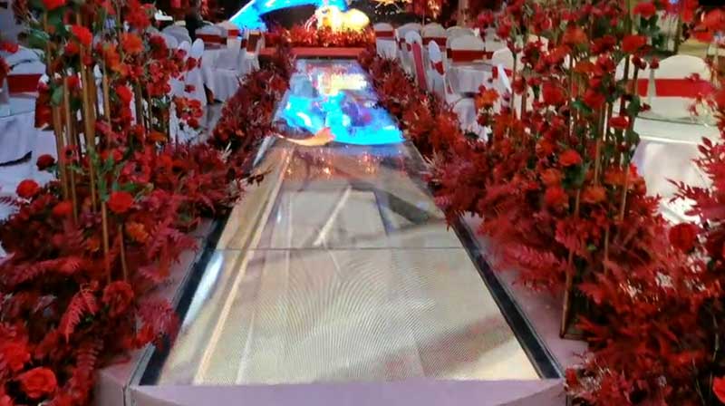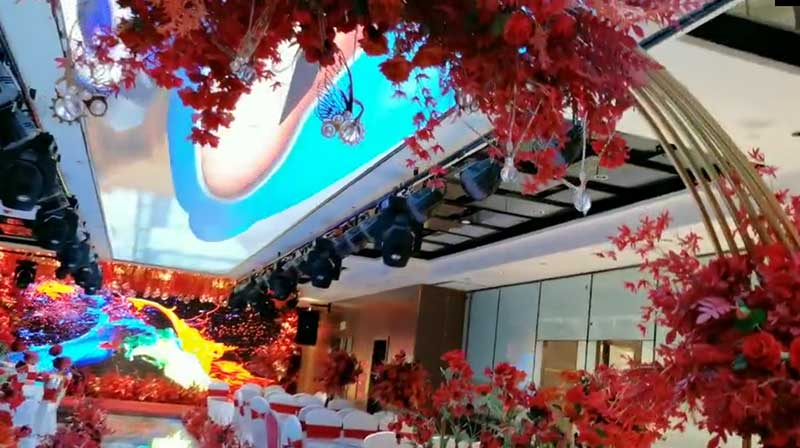 屏體信息:藍普P2.5+P4顯示屏,主屏:2560*1088,地磚屏:3648*320,天幕屏:4800*512