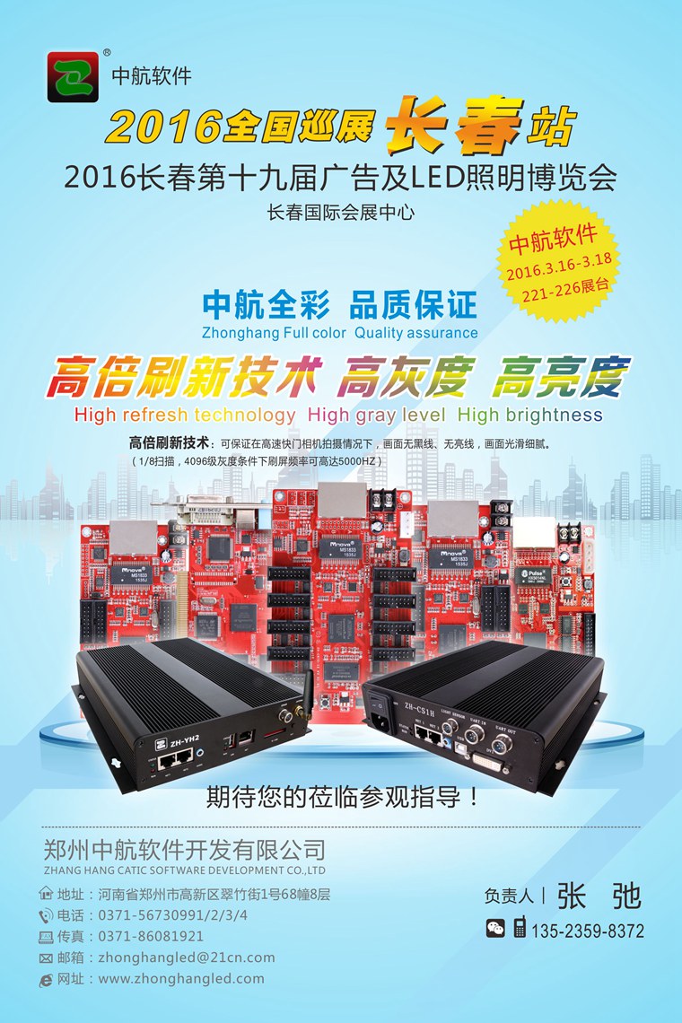 接下來(lái),中航軟件即將開(kāi)啟多地巡展,重點(diǎn)展示:中航全彩控制系統(全彩同步系統、全彩異步系統、全彩卡系列)和中航第六代WIFI控制系統 — 全新通信架構,全新生產(chǎn)工藝,全球最優(yōu)秀的WIFI芯片提供商Broadcom超穩定解決方案和全方位技術(shù)支持!