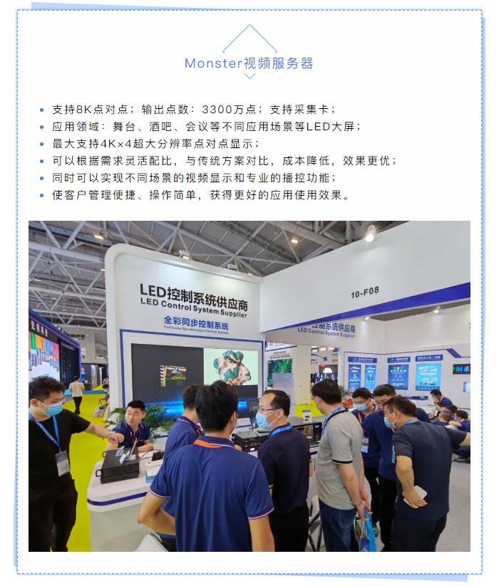 本屆展會(huì ),中航重磅推出:二合一多畫(huà)面視頻控制器、Monster視頻服務(wù)器、二合一視頻控制器、同異步三合一主控、戰狼系列發(fā)送器+接收卡、工程專(zhuān)用異步播放系統、遠程4G云發(fā)送集群系統、門(mén)楣條屏系統等一系列產(chǎn)品。展會(huì )期間,二合一多畫(huà)面視頻控制器備受熱捧,現場(chǎng)參觀(guān)賓朋紛紛體驗,氣氛熱烈。