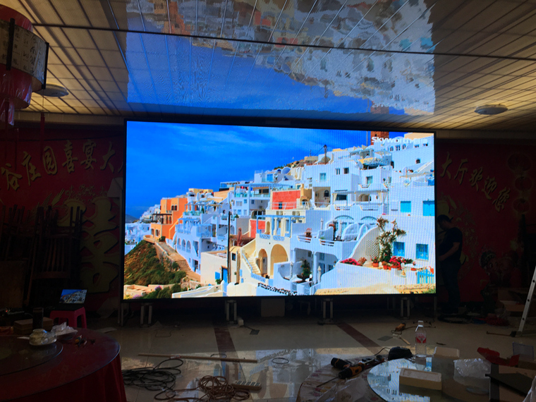 山東省齊河縣豐谷莊園喜宴大廳,室內p5,總點(diǎn)數960×512,單卡帶載點(diǎn)數192×256,十張接收卡,一張發(fā)送卡完美帶載!