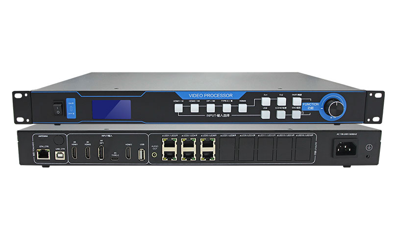 ZH-Z6S 4K two-in-one video processor is a product developed by ZH to meet the convenience of LED large screen installation. It supports high-definition signal input such as HDMI and DP; it supports max pixel 4096*2160@60Hz, 6pcs Gigabit network output port, and supports max width 16384 pixels or a max height 8192 pixels. It adopts a new communication architecture, high refresh, high brightness, new grayscale scanning engine, nanosecond synchronization, and can maintain smooth communication in poor communication conditions, allowing users to experience a more colorful and better LED world!