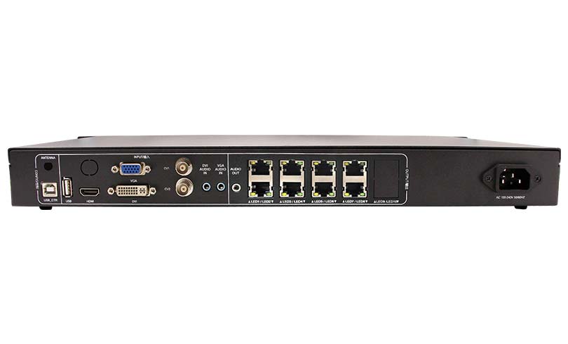 3. The following output signal interface is supported: LAN(RJ45)×8 (with network interface connection status indicator). The maximum resolution of the machine is 5.2 million pixels, support resolution customization. Pixels support: the Max width is 8192 and Max width is 2160.